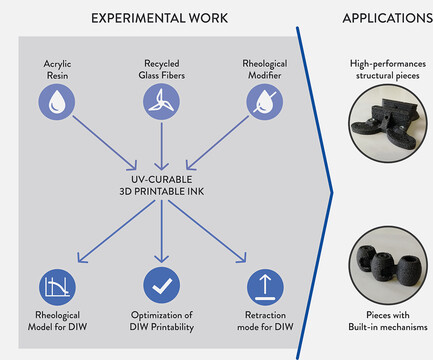 Mantelli, A., Romani, A., Suriano, R., Levi, M., and Turri, S., 2021. Direct Ink Writing of Recycled Composites with Complex Shapes. Process Parameters and Ink Optimization. Advanced Engineering Materials, Vol 23(9), pp. 2100116. DOI: 10.1002/adem.202100116